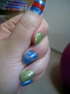 メイトさんで買ったネイルシールも貼ってみました。多分今日しか使い道ないし…。